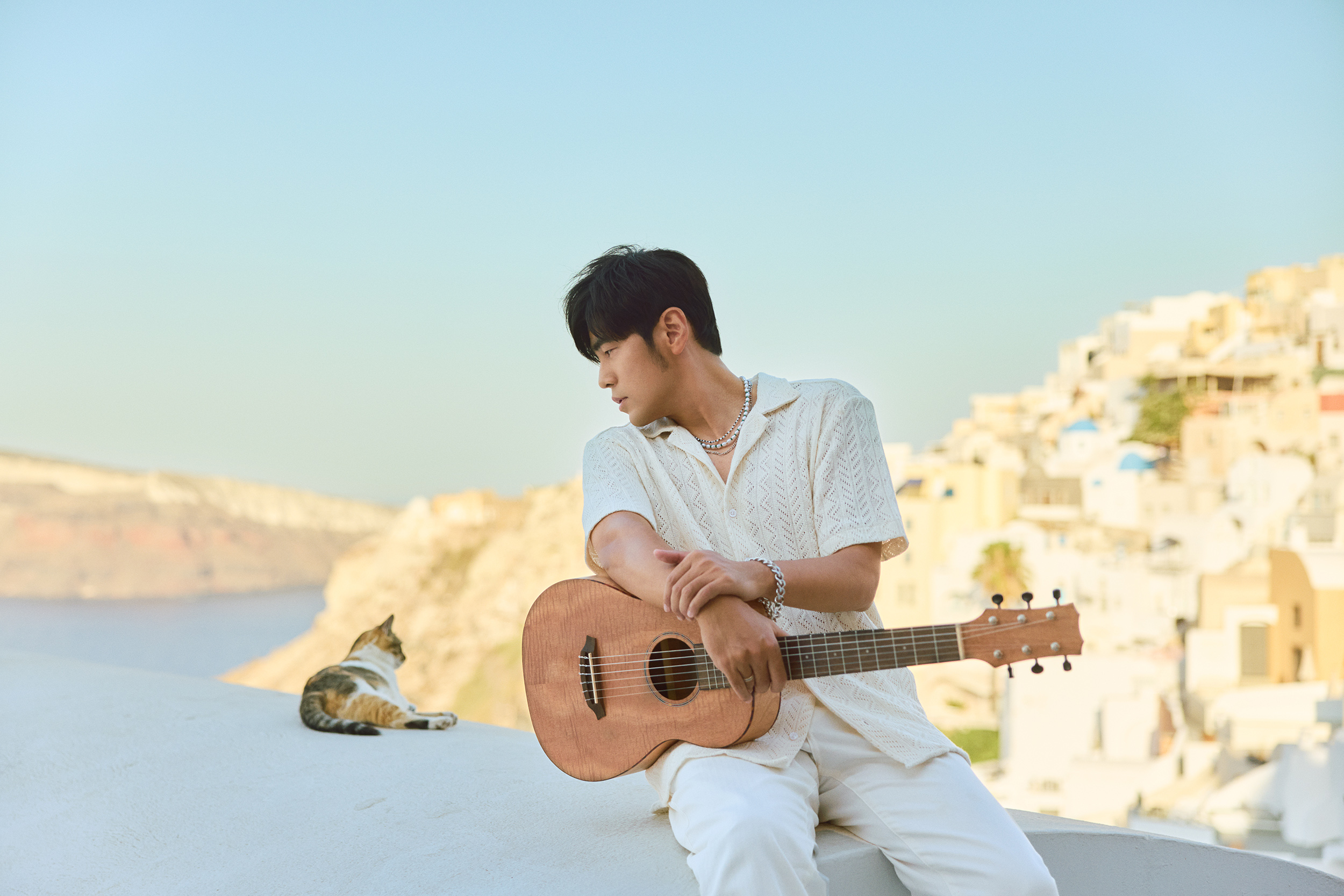 「太陽之子」光芒閃耀希臘愛琴海!樂壇天王周杰倫推出最新專輯「太陽之子」,在甜蜜的「I Do」MV之後,再將浪漫情歌「愛琴海」的MV帶給大家。周杰倫拍攝實境節目「周遊記」來到地中海系的愛琴海,當地風景如畫讓他靈感泉湧,立馬買了把吉他,即興創作起「愛琴海」這首歌曲並拍攝MV,在藍白色相間的建築物前,將聖托里尼海天一色的美景盡收眼簾,周杰倫在MV裡抱著吉他愜意彈唱,抒情R&B的曲風搭配美麗的景緻,連一旁慵懶的貓咪彷彿也很享受地待在他身旁。而「愛琴海」MV也在今天於周杰倫官方YouTube露出,「太陽之子」專輯發片13天以來,已陸續釋出4支MV,打歌速度堪稱樂壇之最!