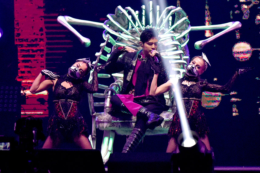 周杰倫「地表最強」演唱會帶歌迷上了太空、到了海底世界,甚至帶粉絲體驗了恐怖試膽大會,在詭譎氣氛營造下,舞者飄移舞台上,有的從十字架道具中傾巢而出,坐在「嘻哈骨頭座椅」上的周杰倫以神秘巴洛克風格的服裝自舞台升起,開啟了「床邊故事」的恐怖序幕,而之後緊接的「竊愛」則與舞者大跳「阿根廷探戈」!在周董帶領下,女舞者勾腳、轉圈、下腰…,動作到位漂亮!其實在這套演唱會裡,周杰倫舞蹈動作不少,也令人驚豔!除了進練舞教室排練,他私下也抓緊時間,利用拍MV或是工作空檔加強訓練,相當認真投入。