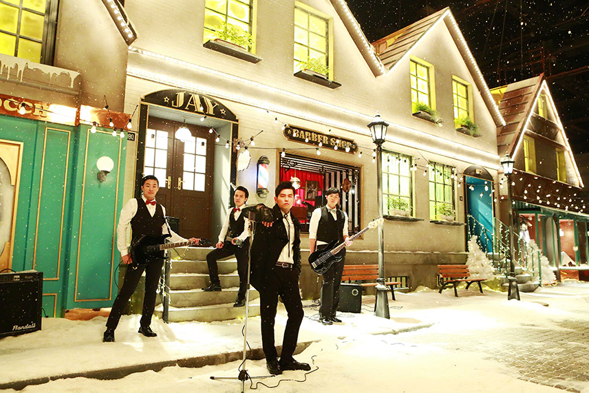 MV也大手筆花費300萬元搭建歐洲小鎮,教堂、理髮廳、石板路、街道櫥窗…,場景搭得講究不說,工作人員手沒停過地操作雪花機,營造雪花紛飛的雪景,就彷彿真的進入被大雪覆蓋的歐洲城市,周杰倫與樂手們以樂團之姿在場景中對嘴,相當浪漫!周董說:「其實三月份已經在捷克拍了這支MV的一部分,那時候雪下得非常漂亮!剩下對嘴的部分,我們還大費周章搭景拍攝,這一切只為了給歌迷最好的視聽享受!」事實上,MV於捷克取景時,周董與工作人員先是在查理大橋附近勘景,碰巧遇到下大雪,原本的紅磚瓦屋頂很快就被白雪覆蓋,就在大雪下得緩和時,周導演見機不可失,趕緊出動空拍機拍攝,捷克的查理大橋與伏爾塔瓦河的雪景也就這麼入鏡MV中了!