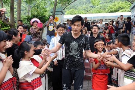 周杰倫每到一個學校都受到師生們熱烈歡迎,同學也獻上熱情演出迎接他,有原住民迎賓舞、學生組成的舞獅團表演、大合唱,甚至學生大展身手表演柔道,讓周杰倫看得相當著迷!其中尤其是原住民樂器表演引他好奇,連忙問:「有誰可以教教我這樂器怎麼使用?」校長立即介紹了同學表演的是「竹管琴」、「木琴」等原住民傳統樂器,周杰倫也立即拿起來把玩一番,熟悉樂理的他也很快就上手。有趣的是,他坐在位子上欣賞小朋友迎賓舞時,一位小女生前去牽起了他的手,拉他加入跳舞的行列,周杰倫也隨著歡愉的樂音融入同學之中,手牽手翩翩起舞繞圈圈!看來與學童玩成一片的他,對小朋友也很有一套!而周杰倫雖然擁有很多舞台經驗,但第一次跳起原住民舞蹈還是忙得七手八腳、跟不上!他開心的說:「這兩天的收穫真的很多!像是第一次跳原住民的舞蹈,我的腳步還跟不上他們呢,哈!」
